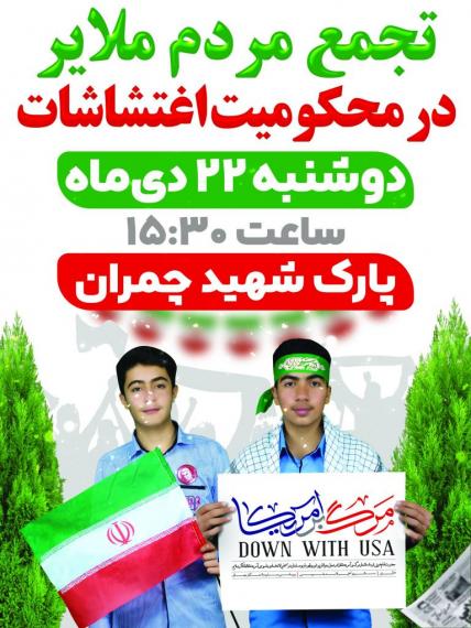 این تجمع همزمان با سراسر کشور و روز دوشنبه ۲۲ دی ماه از ساعت ۱۵:۳۰ در پارک چمران ملایر برگزار می شد