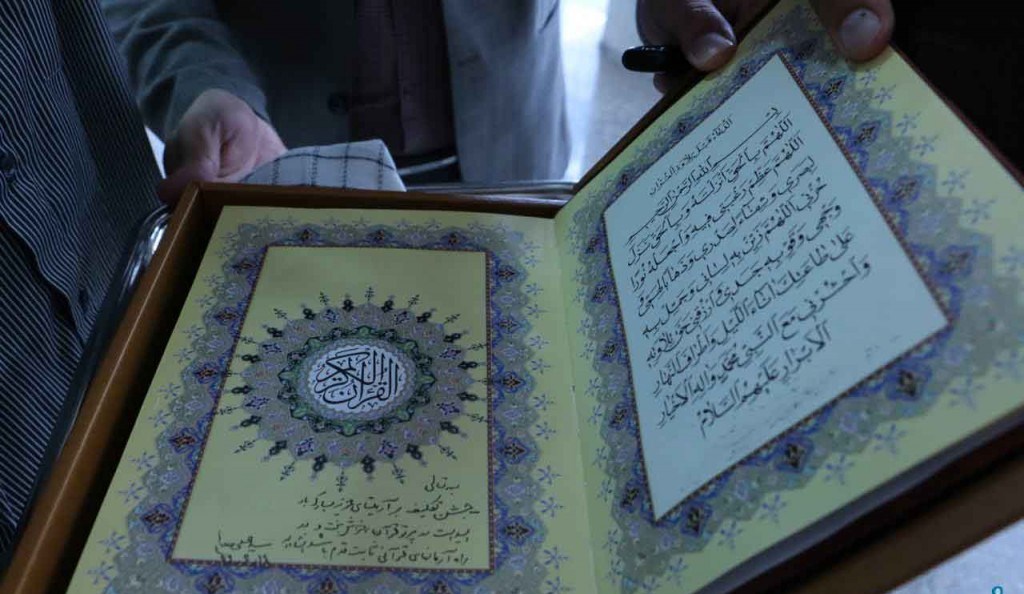 صبح امروز طی مراسمی دست نوشته مقام معظم رهبری بر روی قرآن اهدایی به فرزند شهید رضایی نژاد به مناسبت جشن تکلیف وی رونمایی شد.