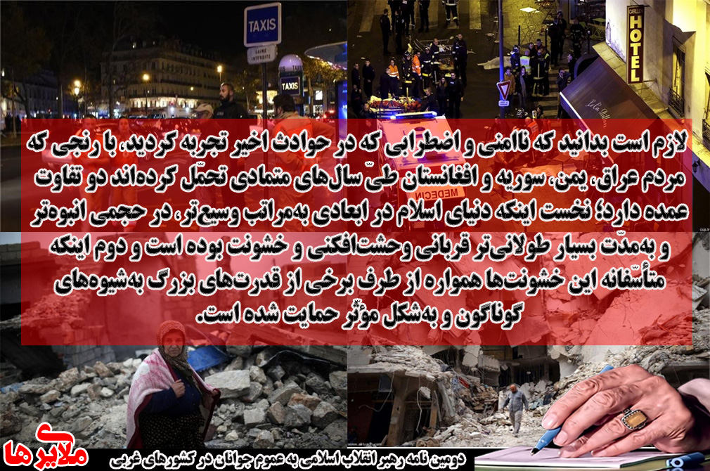 به گزارش ملایریها؛ پایگاه اطلاعرسانی مقام معظم رهبری، پیامی از ایشان را به در خصوص موضوع «نگرانی مشترک در خصوص تروریسم» منتشر کرد.