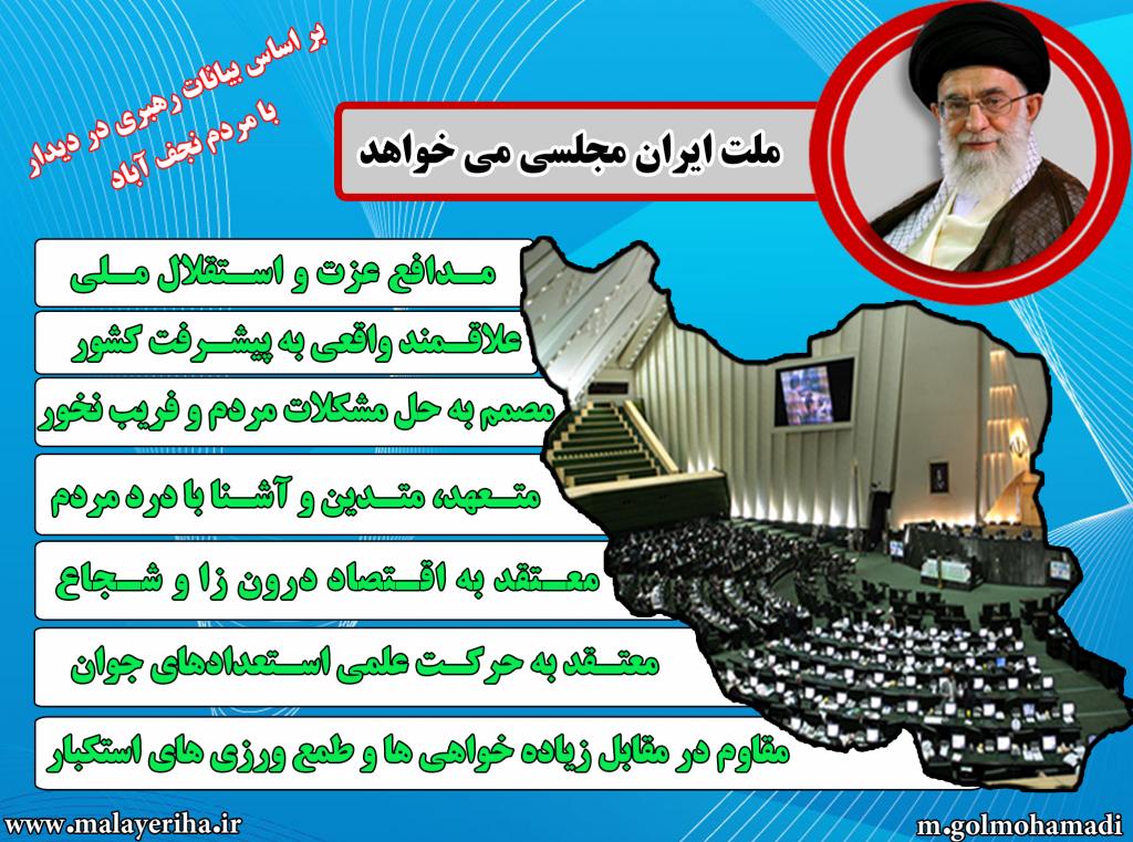 به گزارش ملایریها؛ مقام معظم رهبری در دیدار با مردم نجف آباد ملاک های مجلسی که شایسته ملت ایران است را بیان کردند.