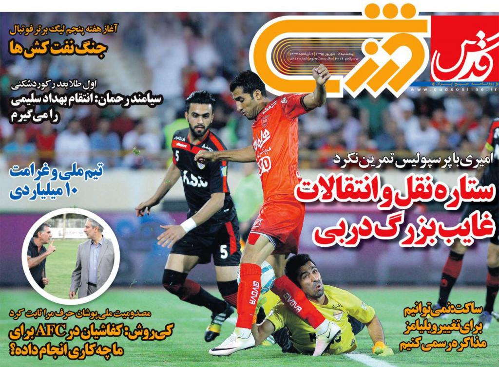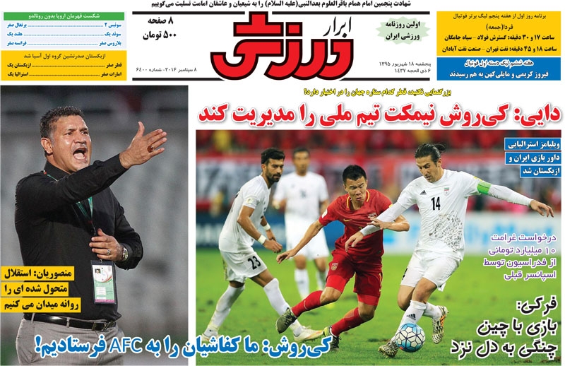 تصاویر نیم صفحه روزنامههای ورزشی چاپ امروز پنجشنبه هجدهم شهریور به مسائل مختلف ورزشی از جمله فوتبال اختصاص دارد.