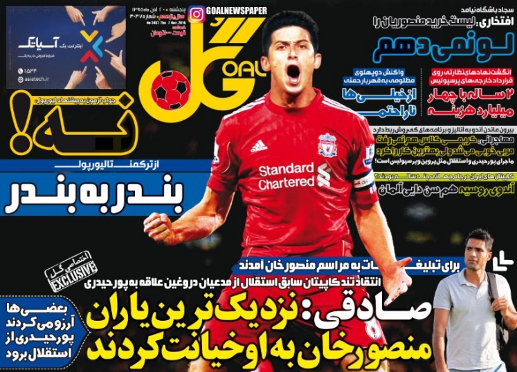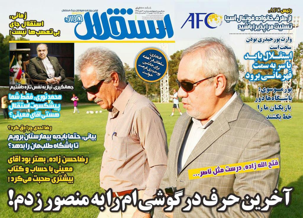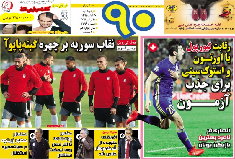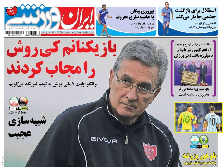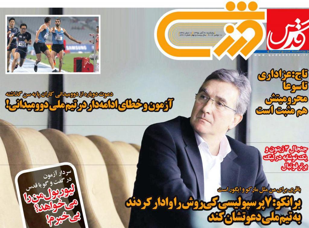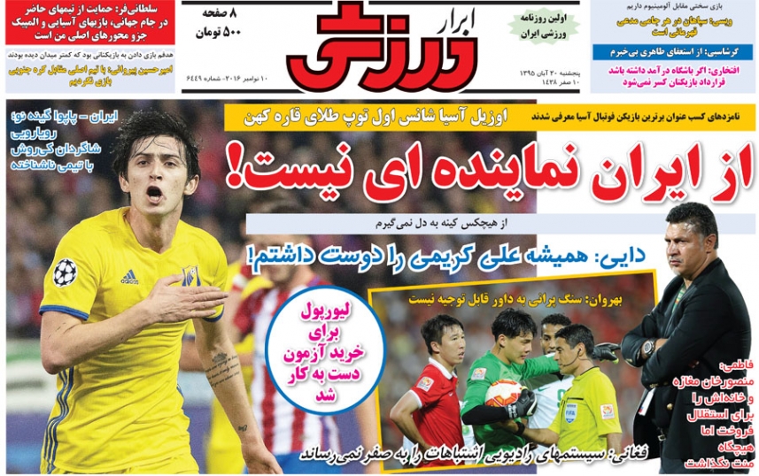 تصاویر نیم صفحه روزنامههای ورزشی پنجشنبه بیستم آبان ماه به مسائل مختلف ورزشی به ویژه فوتبال اختصاص دارد.