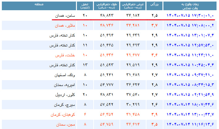 پس از زلزله 3.7 ریشتری و زلزله ای به بزرگی 2.5 ریشتر و در عمق 20 کیلومتری در ساعت 17:30 دقیقه سامن را لرزاند