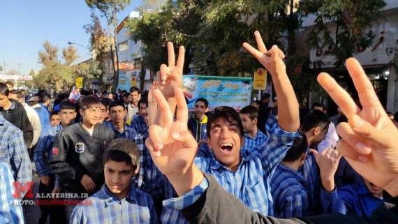 دانشآموزان ملایری در کنار سایر مردم امروز با سر دادن شعارهای مرگ بر آمریکا و مرگ بر اسرائبل و حرمت در مسیر میدان امام خمینی(ره) تا میدان آزادگان بار دیگر روحیه استکبارستیزی خود را به جهان نشان دادند.
