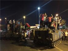 08:23: شبکه سی ان ان در حال پخش تصاویری از نظامیان ترکیه بر روی پل «بسفر» در استانبول است که در حالی تانکهای خود را ترک میکنند که دستانشان به نشانه تسلیم بالای سرشان است.