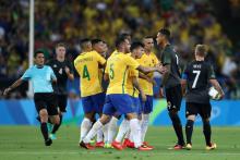 نیمار ستاره بیچون و چرای برزیل در المپیک دقیقه 26 با یک سوپر گل از روی ضربه آزاد برزیل را پیش انداخت اما در دقیقه 59 مکس میر کاپیتان ژرمنها با یک ضربه بغل پای داخل محوطه کار را به تساوی کشاند که نتیجه یک بر یک تا پایان 90 دقیقه پابرجا بود تا فینال المپیک ریو به وقتهای اضافه بکشد.