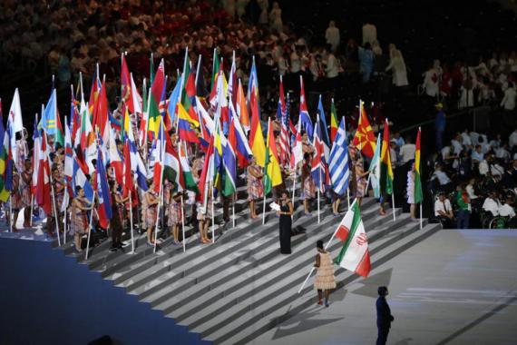 کاروان شهدای منا کشورمان که با 111 ورزشکار در 12 رشته ورزشی در این دوره از رقابت ها شرکت کرده در مراسم افتتاحیه پارالمپیک با پرچمداری بانوی والیبالیست حاضر شد.