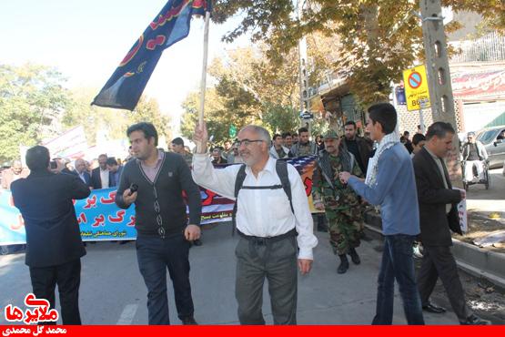 به گزارش ملایریها؛ اسدالله اسدی بازنشسته آموزشوپرورش که سابقه اسارت دربند رژیم بعثی را داشته و با جانبازی 40 درصد و زائر پیادهروی اربعین بوده در راهپیمایی 13 آبان ملایر حضور داشت.