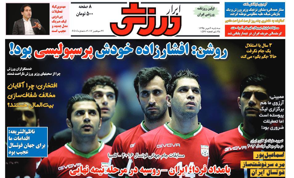 تصاویر نیم صفحه روزنامههای ورزشی چاپ امروز سه شنبه ششم مهرماه به مسائل مختلف ورزشی به خصوص فوتبال اختصاص دارد.