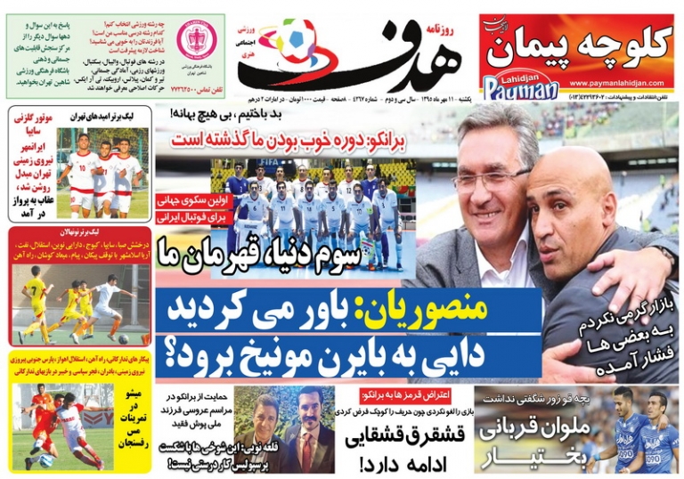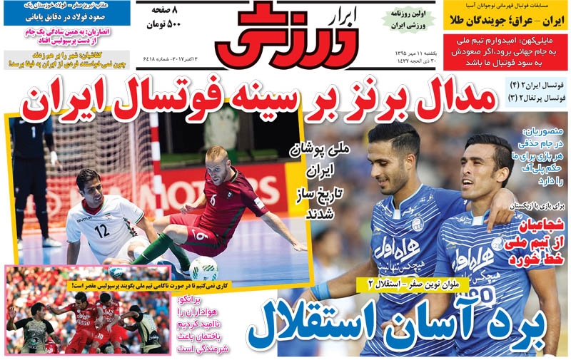تصاویر نیم صفحه روزنامههای ورزشی چاپ امروز یکشنبه دهم مهرماه به مسائل مختلف ورزشی به خصوص فوتبال اختصاص دارد.