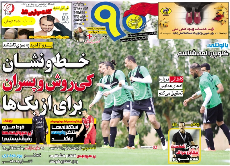 تصاویر نیم صفحه روزنامههای ورزشی چاپ امروز چهارشنبه چهاردهم مهرماه به مسائل مختلف ورزشی به خصوص فوتبال اختصاص دارد.