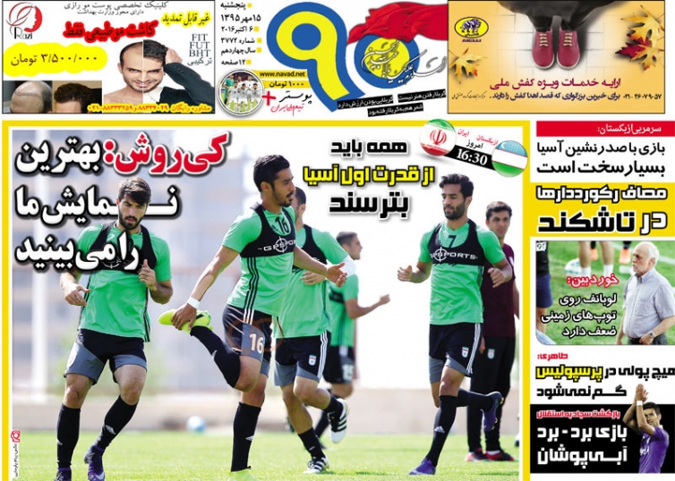 تصاویر نیم صفحه روزنامههای ورزشی چاپ امروز پنجشنبه پانزدهم مهرماه به مسائل مختلف ورزشی به خصوص فوتبال اختصاص دارد.