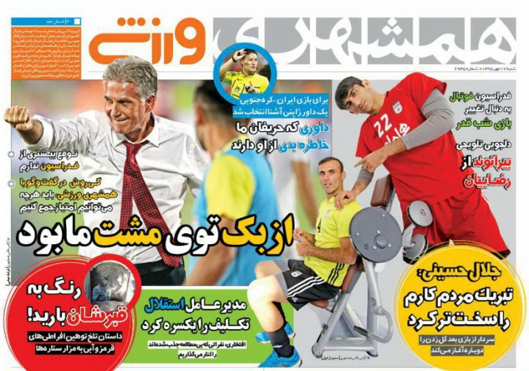 تصاویر نیم صفحه روزنامههای ورزشی چاپ امروز شنبه هفدهم مهرماه به مسائل مختلف ورزشی به خصوص فوتبال اختصاص دارد.