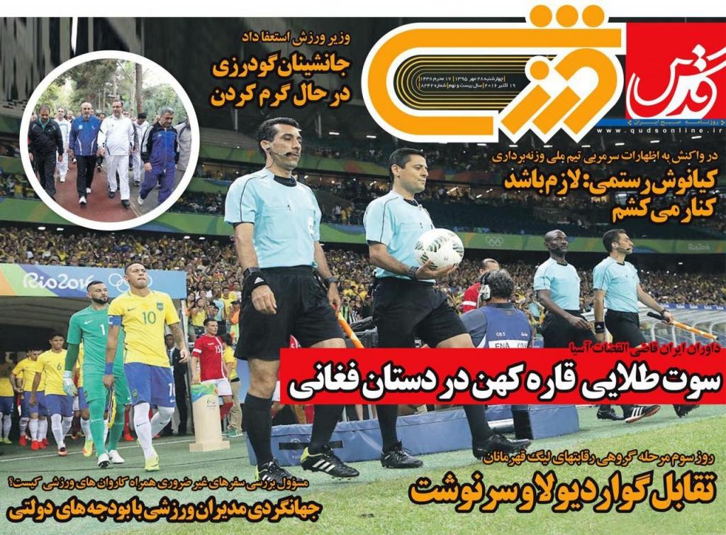 تصاویر نیم صفحه روزنامههای ورزشی چاپ امروز چهارشنبه بیست و هشتم مهرماه به مسائل مختلف ورزشی به خصوص فوتبال اختصاص دارد.