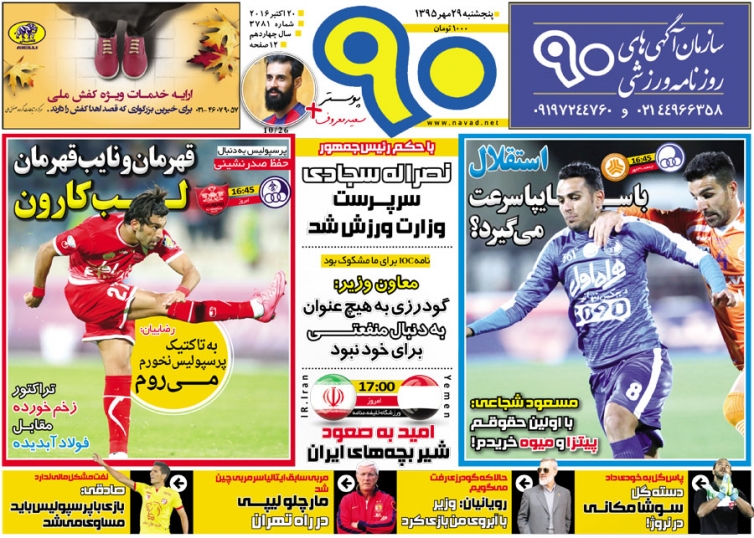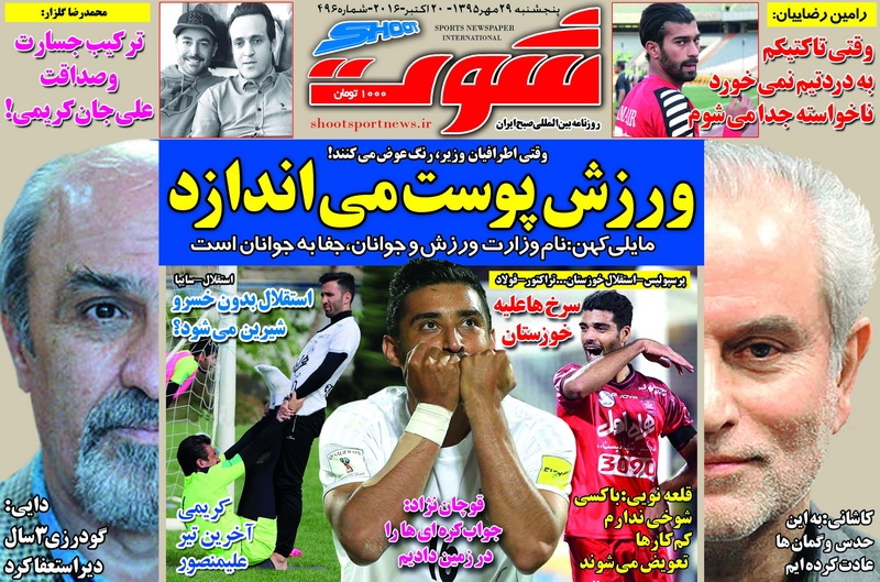 تصاویر نیم صفحه روزنامههای ورزشی چاپ امروز پنجشنبه بیست و نهم مهرماه به مسائل مختلف ورزشی به خصوص فوتبال اختصاص دارد.