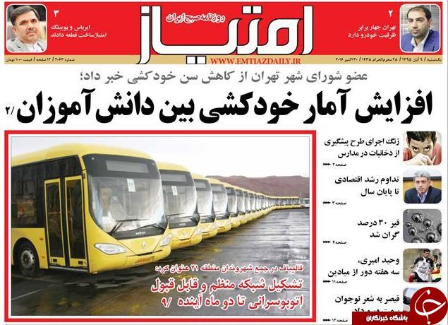 تصاویر صفحه نخست روزنامههای 9 آبان؛