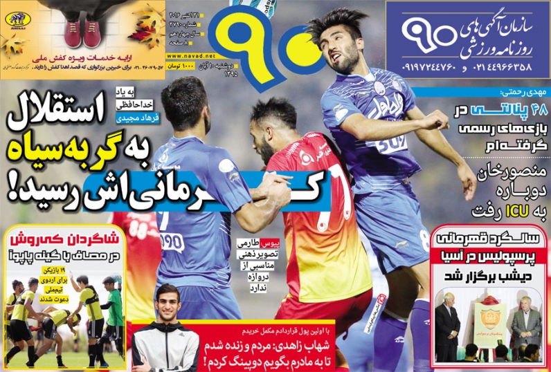 تصاویر نیم صفحه روزنامههای ورزشی چاپ امروز دوشنبه دهم آبان به مسائل مختلف ورزشی به خصوص فوتبال اختصاص دارد.