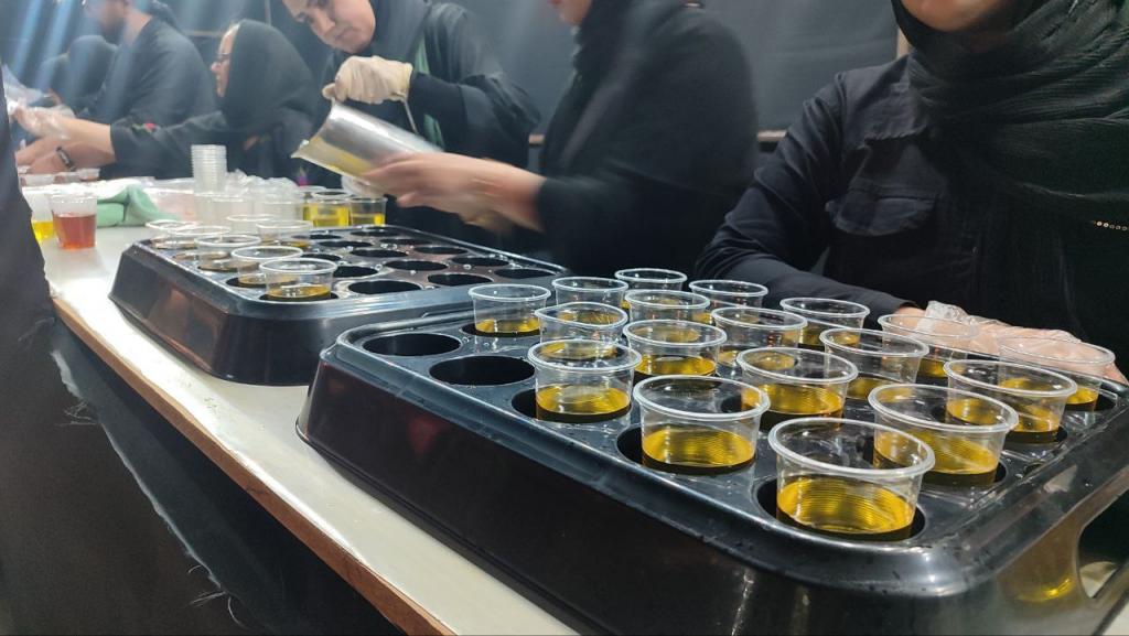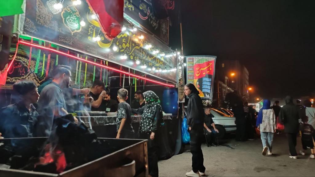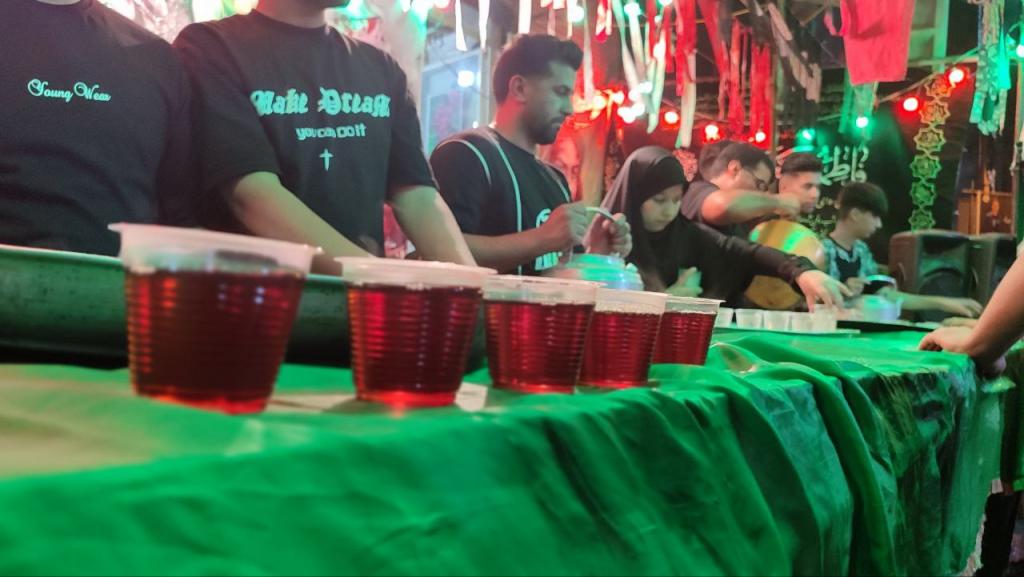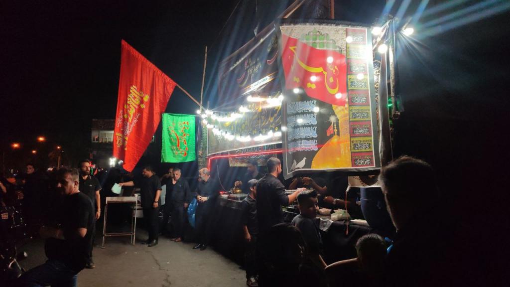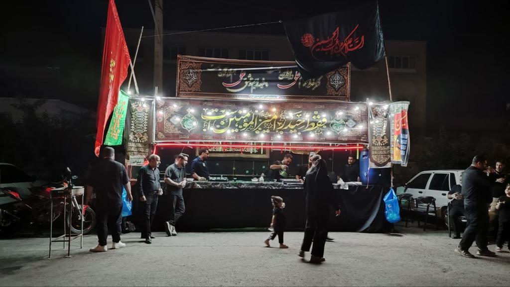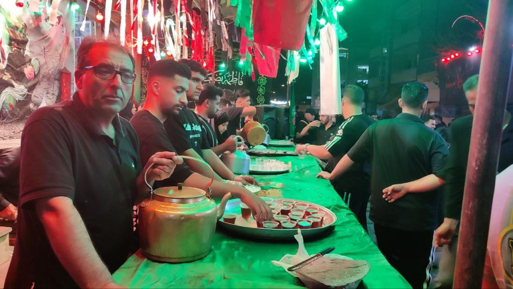 زن و مرد، جوان و پیر، دوشادوش هم، در این ایستگاههای مهر به کار میآیند. گویی هر کدام، خود را خادمی میدانند بر سر سفرهی کریمانهی امام حسین(ع). بوی نعناع و گلاب در هوا میپیچد و صدای مهربانِ بفرمایید، صلواتی گرمی بخش جانهای خستهای است که از راه رسیدهاند.